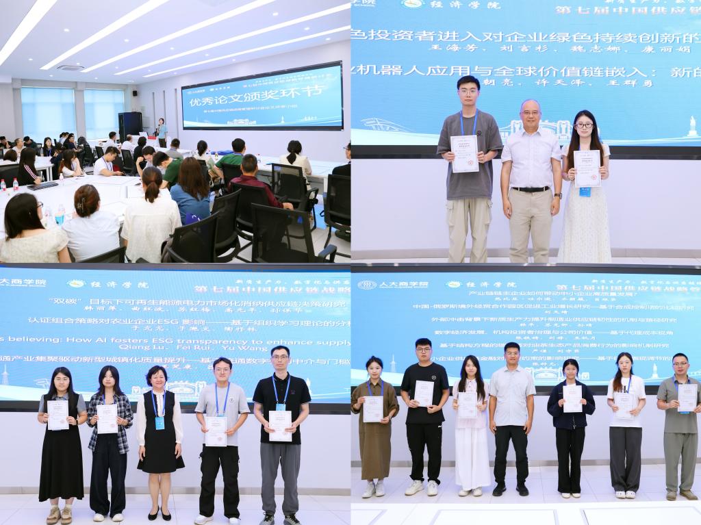 第四单元优秀论文颁奖环节由中国人民大学农业与农村发展学院于亢亢教授主持。经第七届中国供应链战略管理研讨会论文评选小组评定,共评选优秀论文一等奖2篇、二等奖4篇、三等奖6篇。
