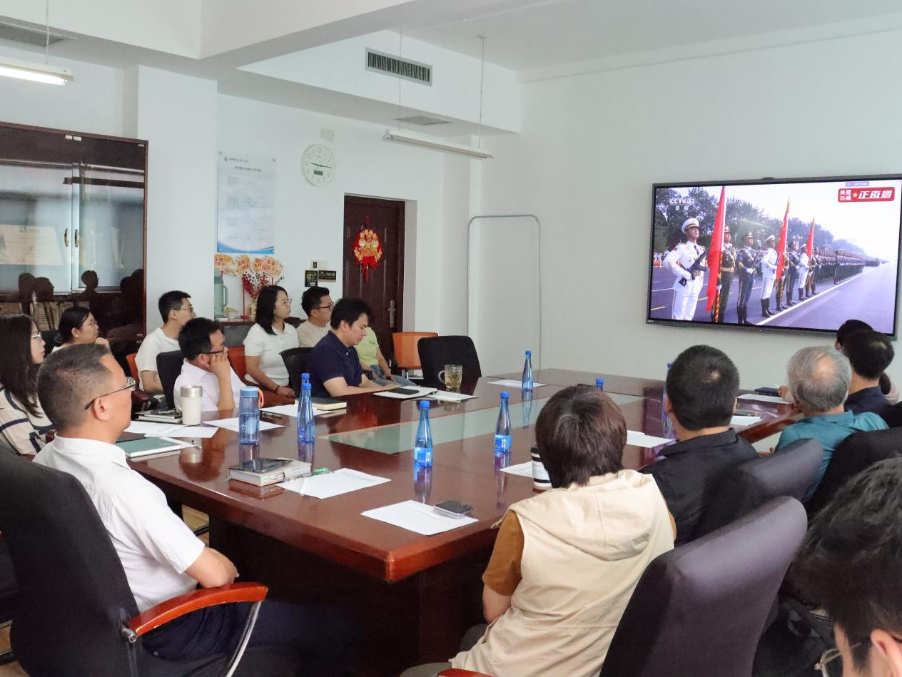 9月3日,中国人民抗日战争暨世界反法西斯战争胜利80周年纪念大会在北京天安门广场隆重举行,中共中央总书记、国家主席、中央军委主席习近平发表重要讲话并检阅受阅部队。上午9点,在主教楼615、602会议室和图配楼报告厅,进入欧博官方网站党委组织师生收看大会直播,第一时间学习领会习近平总书记的重要讲话精神,进入欧博官方网站中层领导干部、师生参加本次学习并交流心得体会。