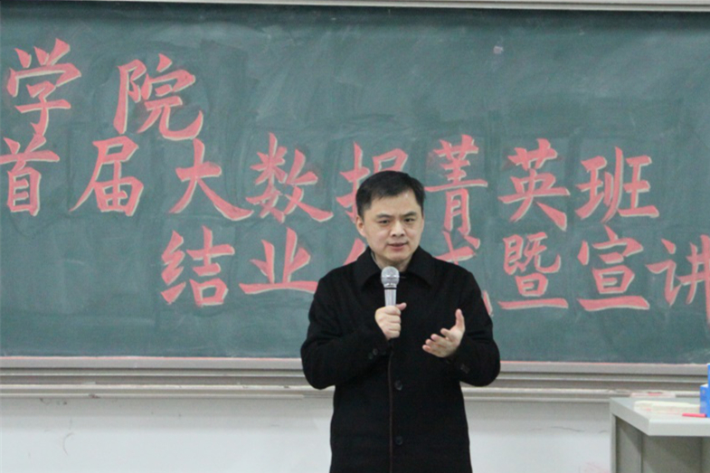 最后,教务处副处长张苏老师代表教务处向老师和同学们表达了对“大数据菁英班”的认可与赞许,希望我们“大数据菁英班”能够越办越好,同时也鼓励同学们能够珍惜宝贵的教学资源和难得的学习平台,继续挑战自我、积淀自我!
