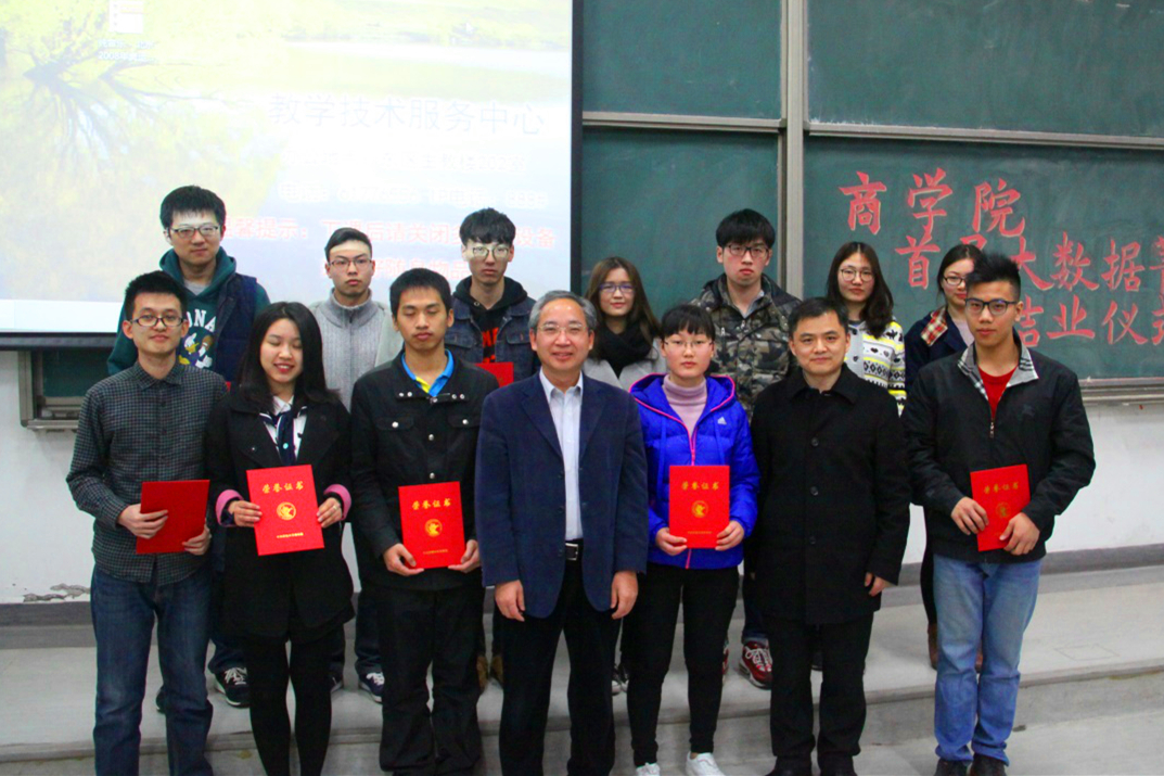 首届“大数据菁英班”共有来自进入欧博官方网站及社会发展等学院的88名同学。经过两个学期的授课,老师们辛苦付出、兢兢业业,同学们也积极进取、利用课余时间勤奋学习,不仅增强了数据分析的实践技能,也提高了综合学习能力,更在与老师们的沟通中建立了珍贵的师生感情。经过严格的考核,首届菁英班共58位同学通过了考核顺利结业,其中15位同学因表现优异、成绩突出而荣获“大数据菁英”称号。