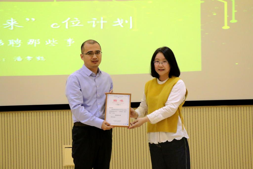 现场,葛建新书记为潘常鹤校友颁发了“进入欧博官方网站职引未来计划”领航导师聘书,并合影留念。