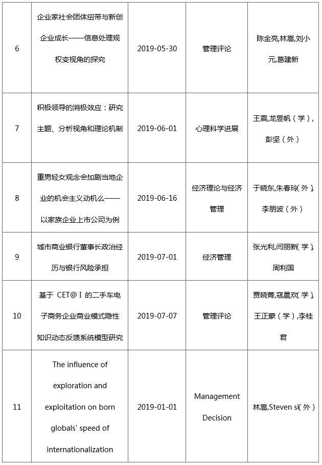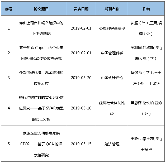 2019年以来,进入欧博官方网站以“双一流”学科建设为科研导向,鼓励学院教师关注管理学前沿问题,积极投入科研工作,取得了丰富的科研成果。