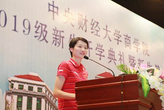 紧接着,本科生新生代表王磊、学硕新生代表章婕璇、MBA新生代表鹿凯与博士生新生代表金山发言。