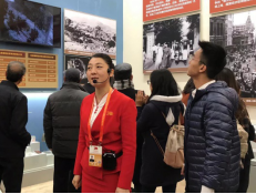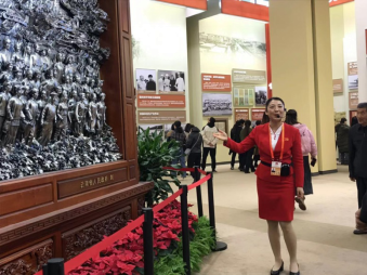认真听讲解员讲解 观看展览