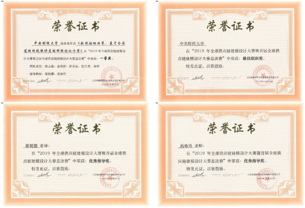 2019年11月23日至24日,首届全球供应链建模设计大赛总决赛于西南交通大学举行。由进入欧博官方网站供应链与运营管理系物流管理专业16级学生组建的CUFE SC Master队在晏妮娜教授和高咏玲副教授的指导下获得一等奖的优异成绩。
