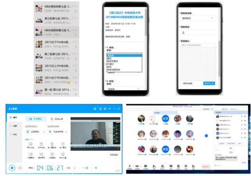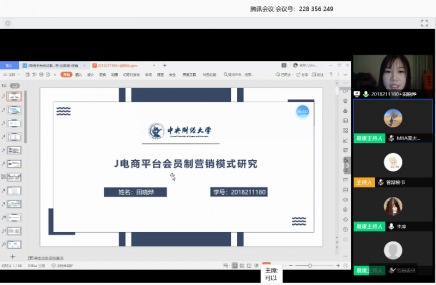 本次MBA线上视频预答辩采用腾讯会议、EV录屏、微信群、问卷星等多平台综合协调方式进行,通过在线共享、演示学位论文PPT和全程视频的方式,MBA学生与答辩委员进行实时交流。答辩委员经过商议后,采用在线填写表决票,并且对结果进行线上电子签名,一系列步骤都高度还原现场答辩的流程。MBA教育中心行政教师和答辩秘书在每一个场次提供服务支持,对答辩过程全程录音录像,对关键画面截屏保留,并与答辩记录一并留存,实现整个答辩过程可回溯、可复查,以确保线上答辩质量。老师和同学们表示,本次线上预答辩过程组织严谨,流程规范,井然有序,效率和效果均令人满意。相较于传统答辩形式,线上答辩更利于答辩过程的公开、透明,并且,全过程被完整记录,可复查,经得住检验。
