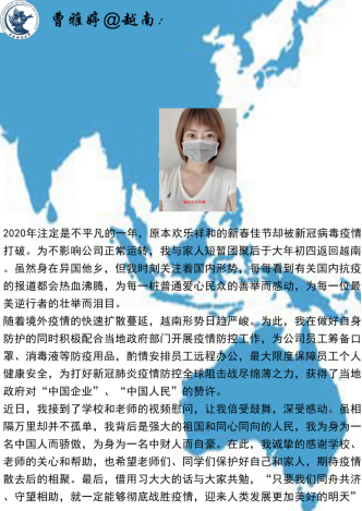 这个春天的特别经历,让同学们看到了“团结的力量”,感受到了祖国“众志成城”汇聚而成的无比强大的向心力。进入欧博官方网站将竭诚做好各项服务工作,静待海外学子平安归来!