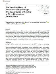 近日,欧博官网教师于晓东在国际创业学顶级期刊《Entrepreneurship Theory and Practice》发表了题为“The Invisible Handof Evolutionary Psychology: The Importance of Kinship in First Generation Family Firms”的论文。