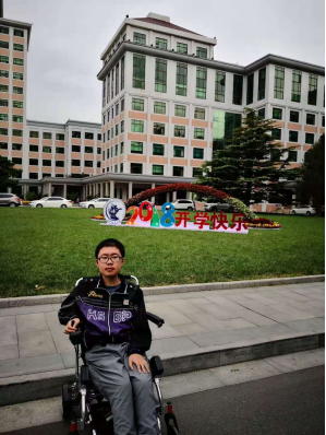 正常的学习之外,学校、学院在生活中方方面面的照顾更是温暖了我的心灵,领导和老师们经常来宿舍看望我,询问我在学习生活等方面的情况,并为我解决实际问题;入学时,学校在食堂和图书馆等地安装了无障碍设施,方便像我这样行动有困难的同学顺利进出;2020年9月,由于主教北门封闭,每回上课需要经过主教一层的阶梯,学院考虑到我的情况,积极向学校相关部门和校领导反映,在主教增设了无障碍通道,使得我能够顺利地通行。