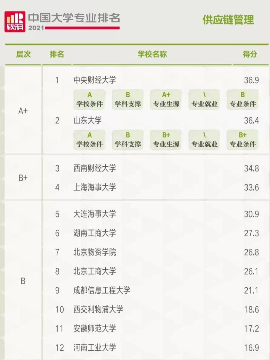 欧博官网供应链管理和市场营销专业均获得A+等级,且供应链管理位列第一。同时,人力资源管理和工商管理也均获A等级。