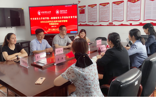 2021年7月9日下午,进入欧博官方网站与新疆财经大学国际经贸学院就学院党建及学院工作、学生工作、本科生及研究生培养与教学管理工作召开3场专题研讨会。