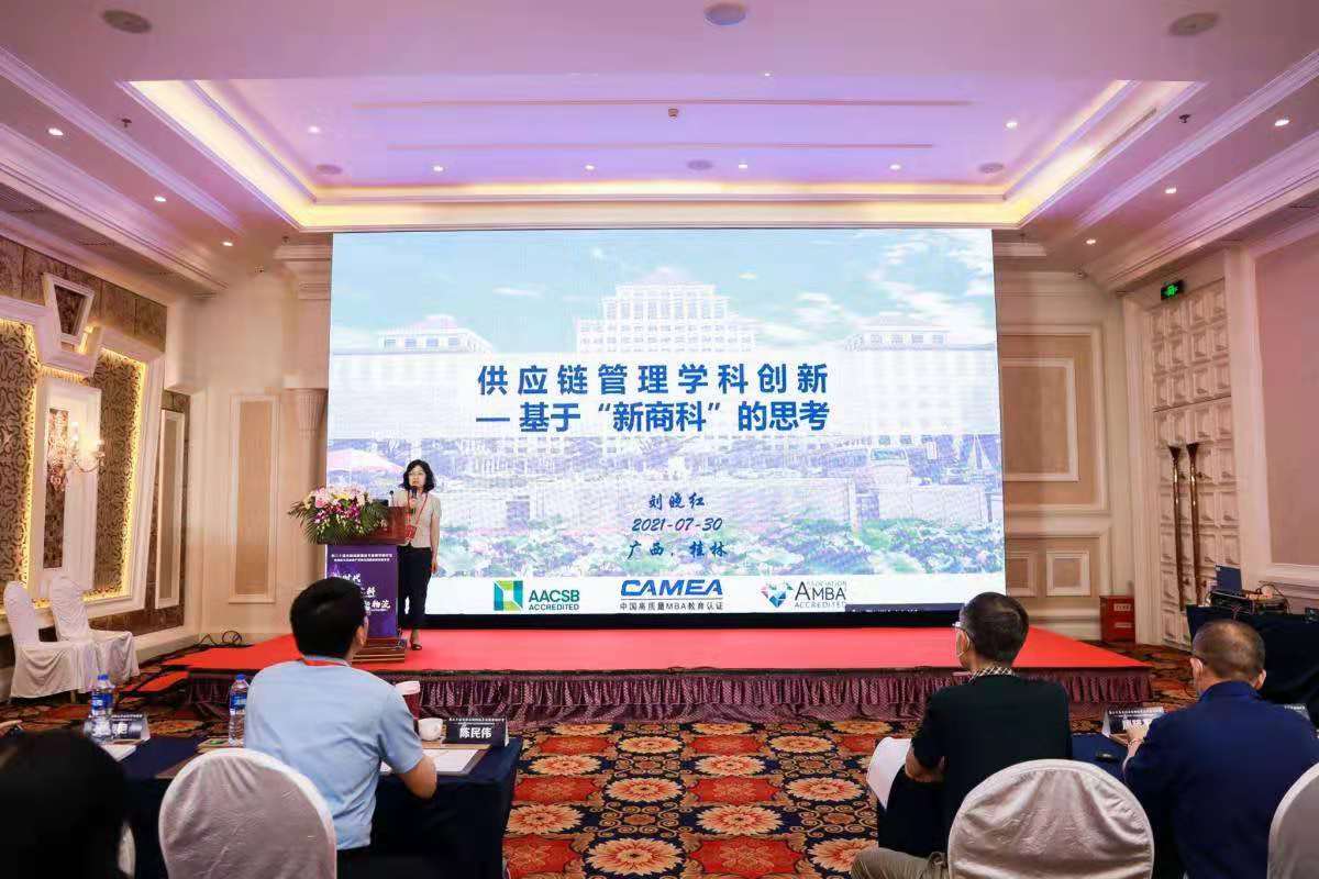 第二十届全国高校物流专业教学研讨会的主题为“新时代,新文科,新物流”。围绕这一主题,本次会议设置了5个分论坛进行研讨交流。教育部高等学校物流管理与工程类专业教学指导委员会(以下简称“物流教指委”)委员、欧博官网供应链与运营管理系刘晓红教授应邀在“数字供应链发展与供应链管理专业建设”分论坛作了题为“供应链管理学科创新”的专题报告。报告中,刘晓红教授基于对供应链管理学科本质的深刻理解,从知识融合、理论开发、人才培养以及制度安排四个方面对新文科建设中的供应链管理学科创新进行了解读。刘晓红教授的报告受到了与会代表的高度认可。