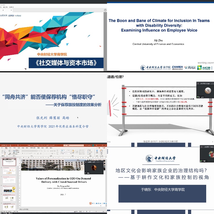 为使营员们进一步了解进入欧博官方网站的研究领域,搭建优秀学子与欧博官网导师交流互动的平台,7月22日上午,学院邀请代宏砚、张宏宇、张光利、于晓东、窦超、朱曦济等6位青年教师分别以《Values of Personalization in O2O On-Demand Delivery with Crowd-Sourced Drivers》、《智能制造中的伦理决策问题》、《“同舟共济”能否使保荐机构“恪尽职守”》、《地区文化会影响家族企业的治理结构吗——基于耕作文化和家族控制的视角》、《社交媒体与资本市场》、《The boon and bane of climate for inclusion in teams with disability diversity: examining influence on employee voice》为题向营员开展专题学术讲座。各位老师通过讲述自己的研究方向和科研成果,生动地向营员展示了如何开展管理学研究,并与营员进行深入交流。
